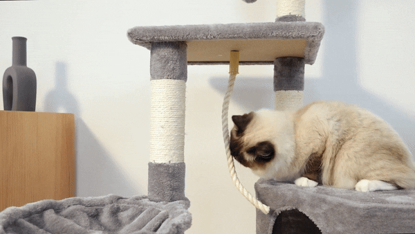Our cat tower comes packed with features designed to cater to your cat’s natural instincts and provide endless hours of fun. Crafted from durable wood and available in stylish gray or beige, this cat tree blends seamlessly into any home decor.