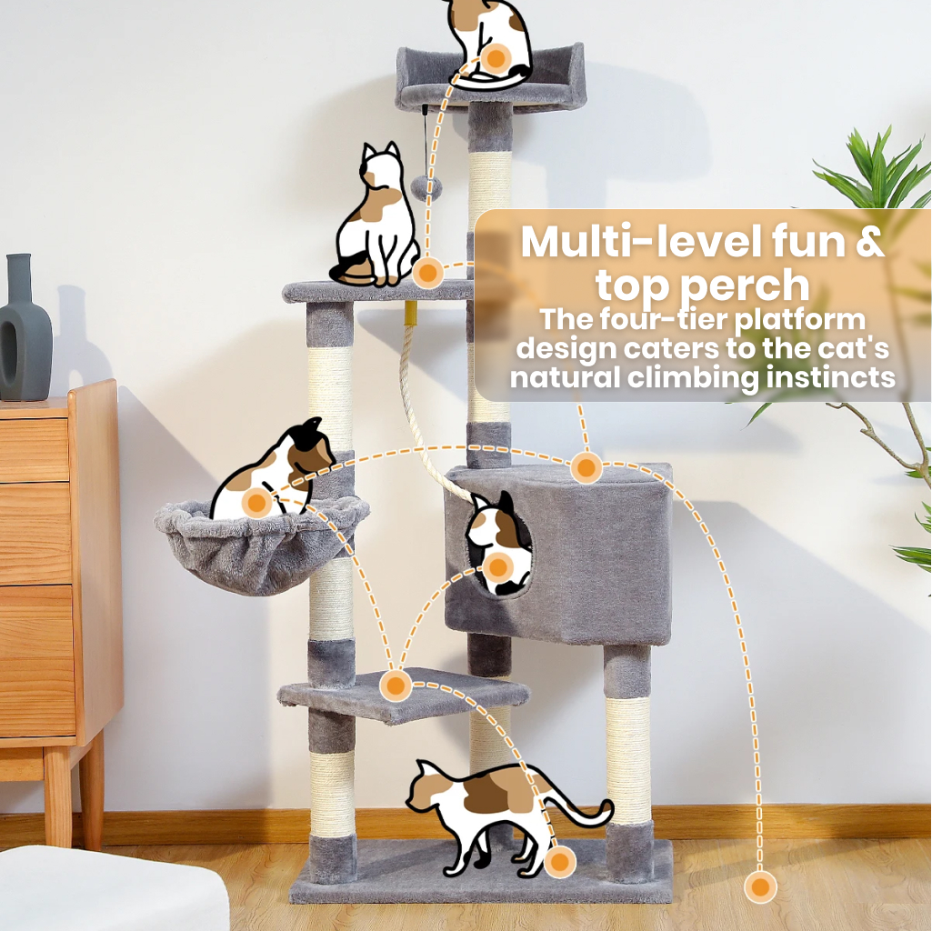 - Four Levels of Play: With multiple tiers, your cat can climb, perch, and explore, keeping them active and agile.